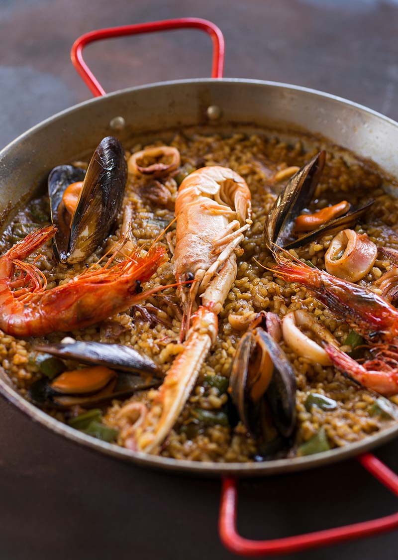 In addition to our classic paellas, we offer seasonal paellas with local products, seafood paella, squid and butifarra (Catalan sausage) paella, black rice with baby squid, seafood broth rice, and shrimp fideuà, which top the list of our highest rated rice dishes.
